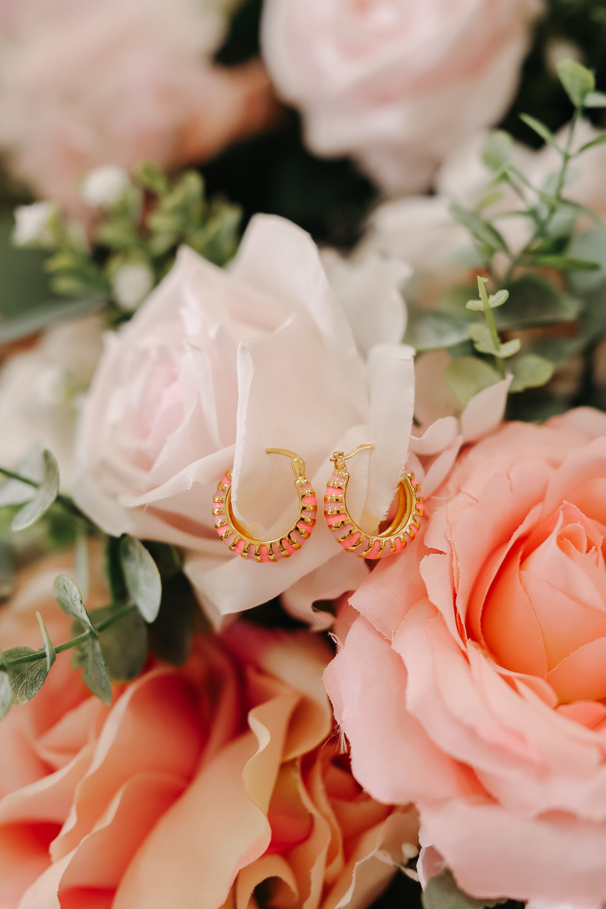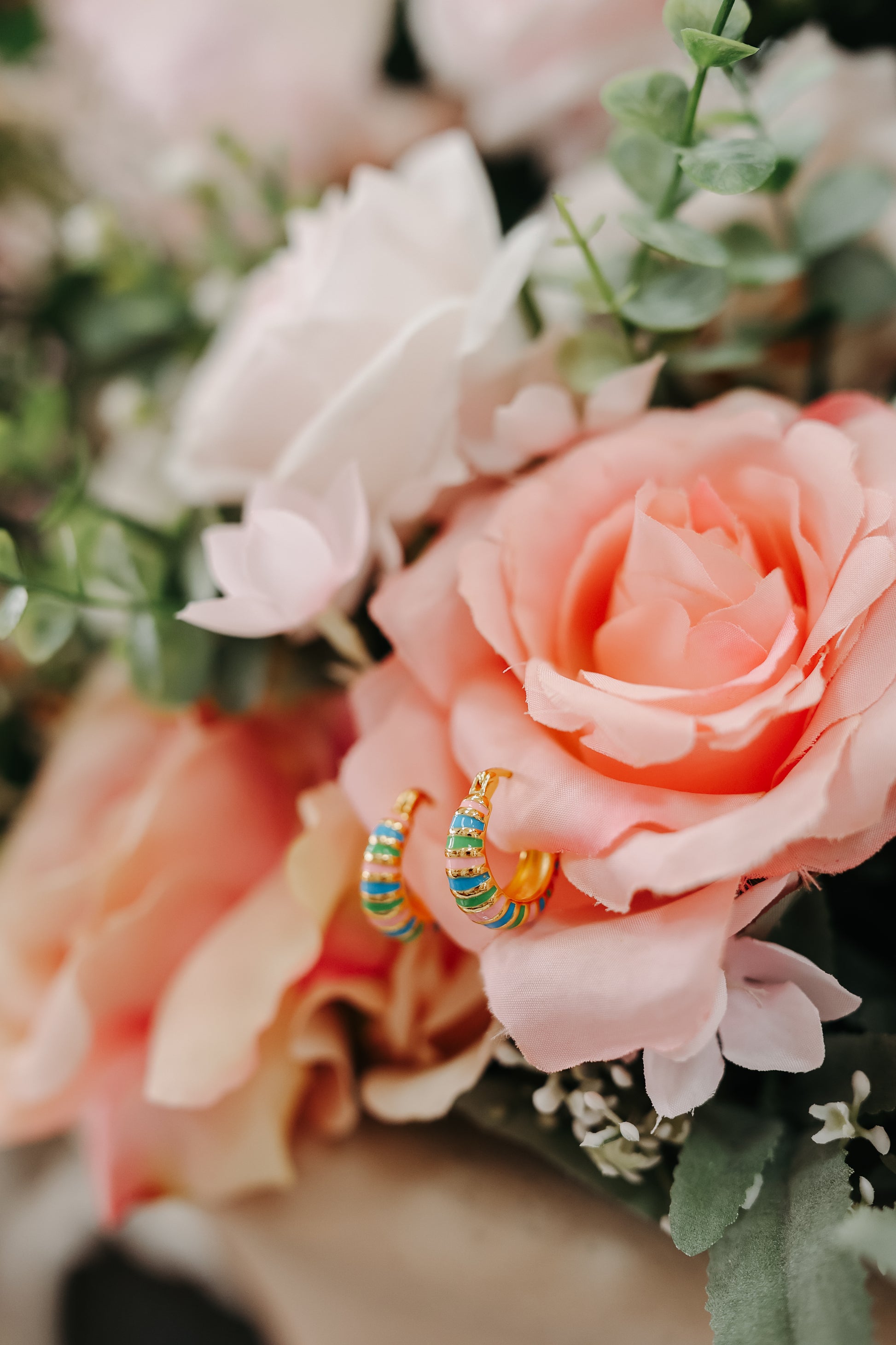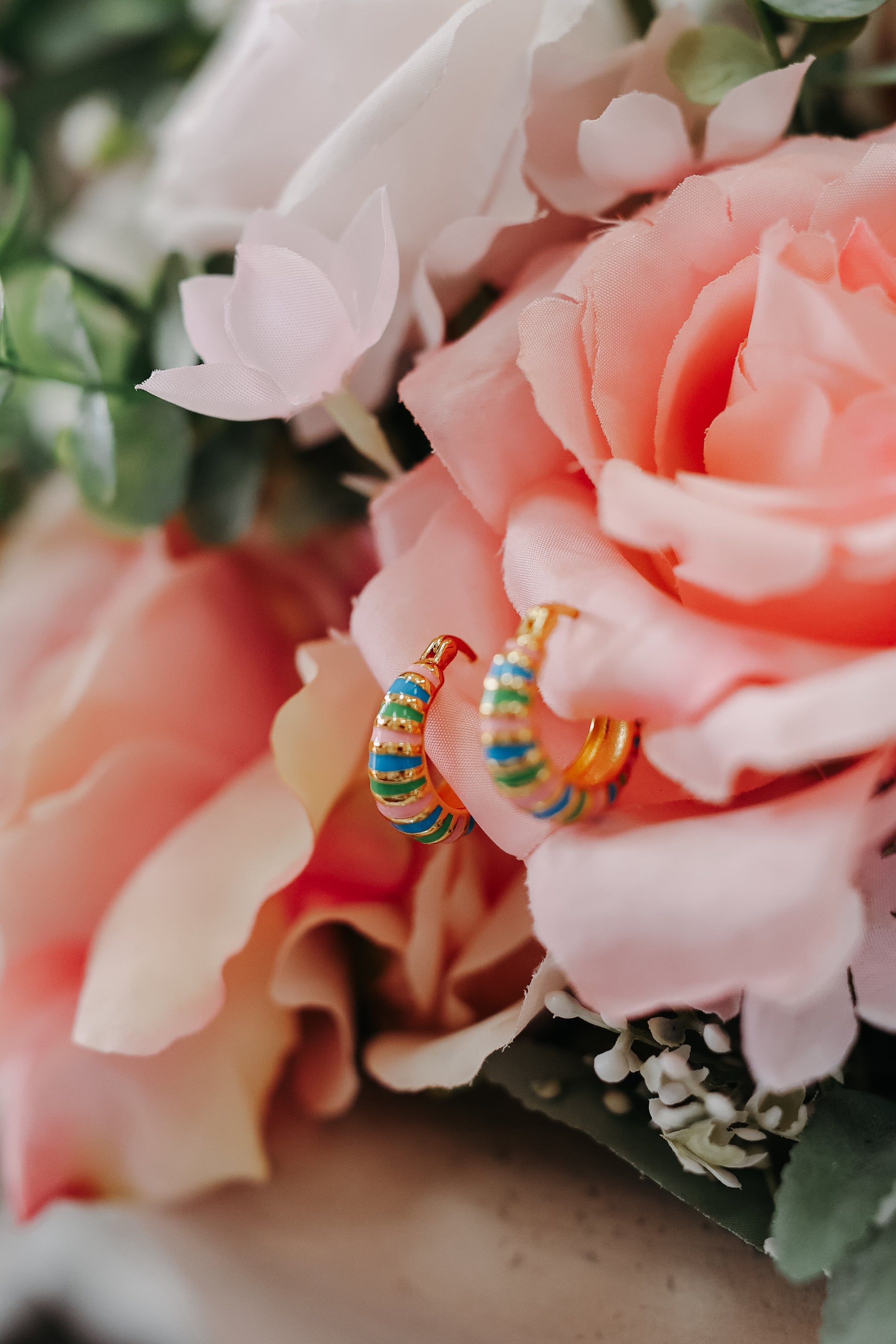 Pop, sparkle, and playful charm. The Alora Huggie Hoops bring the fun with bold enamel stripes and chunky gold plating. These statement-making mini hoops are available in multiple vibrant color combos—perfect for mixing and matching your mood. Lightweight but full of personality, they’re the earrings your accessory lineup has been missing.