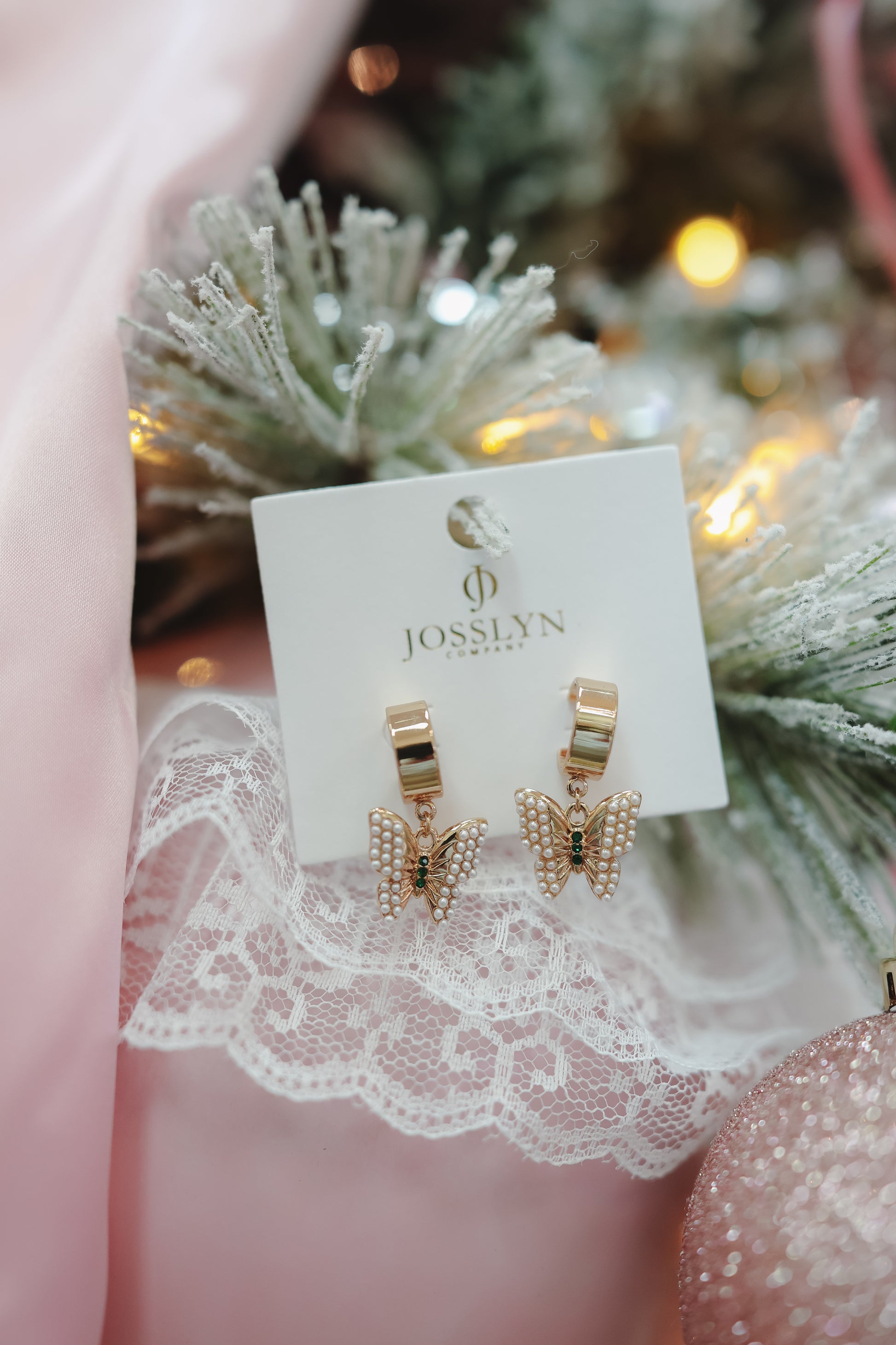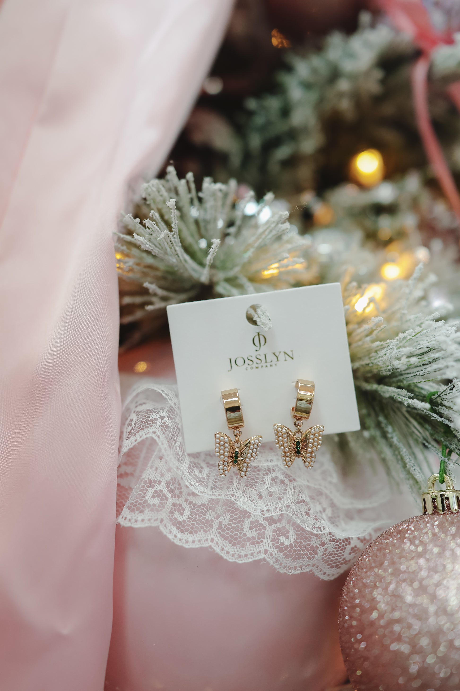 Meet your new favorite dainty-glam earrings. The Baylee Butterfly Pearl Pavé Huggies are the ultimate flirty finishing touch — giving coquette, charm-bracelet nostalgia, and a little touch of luxe all in one. Each butterfly is detailed with micro pearls, sparkly pavé accents, and soft green crystals for that delicate vintage-inspired pop. Perfect for holiday outfits, date-night looks, or adding a girly moment to your everyday style. These lightweight huggies flutter with every move — sweet, shiny, and totally irresistible.