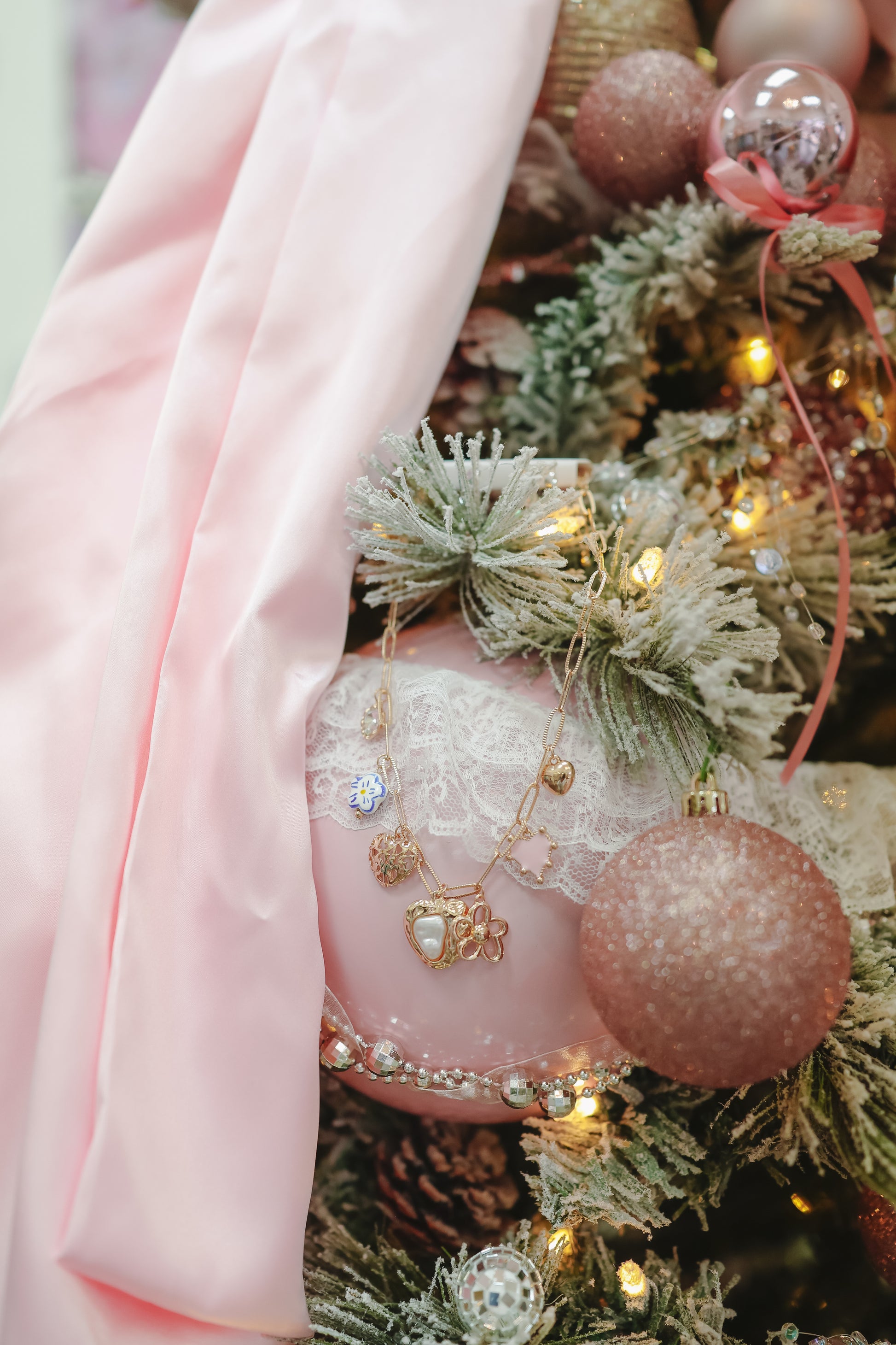 The Cambria Heart Charm Necklace is a dreamy, coquette-inspired statement piece anchored in sweetness, shimmer, and a little bit of vintage charm. Designed on a delicate yet durable gold paperclip chain, this necklace features a curated mix of heart pendants, floral charms, and gemstone-inspired details that make it feel collected, romantic, and effortlessly feminine. Each charm brings its own personality—glazed florals, textured gold hearts, pearly accents, and a dainty pink heart for that soft-girl sparkle. Perfect for layering or wearing as a standalone moment, Cambria gives every outfit a touch of bow-core, cottagecore, and old-Hollywood femininity all at once.