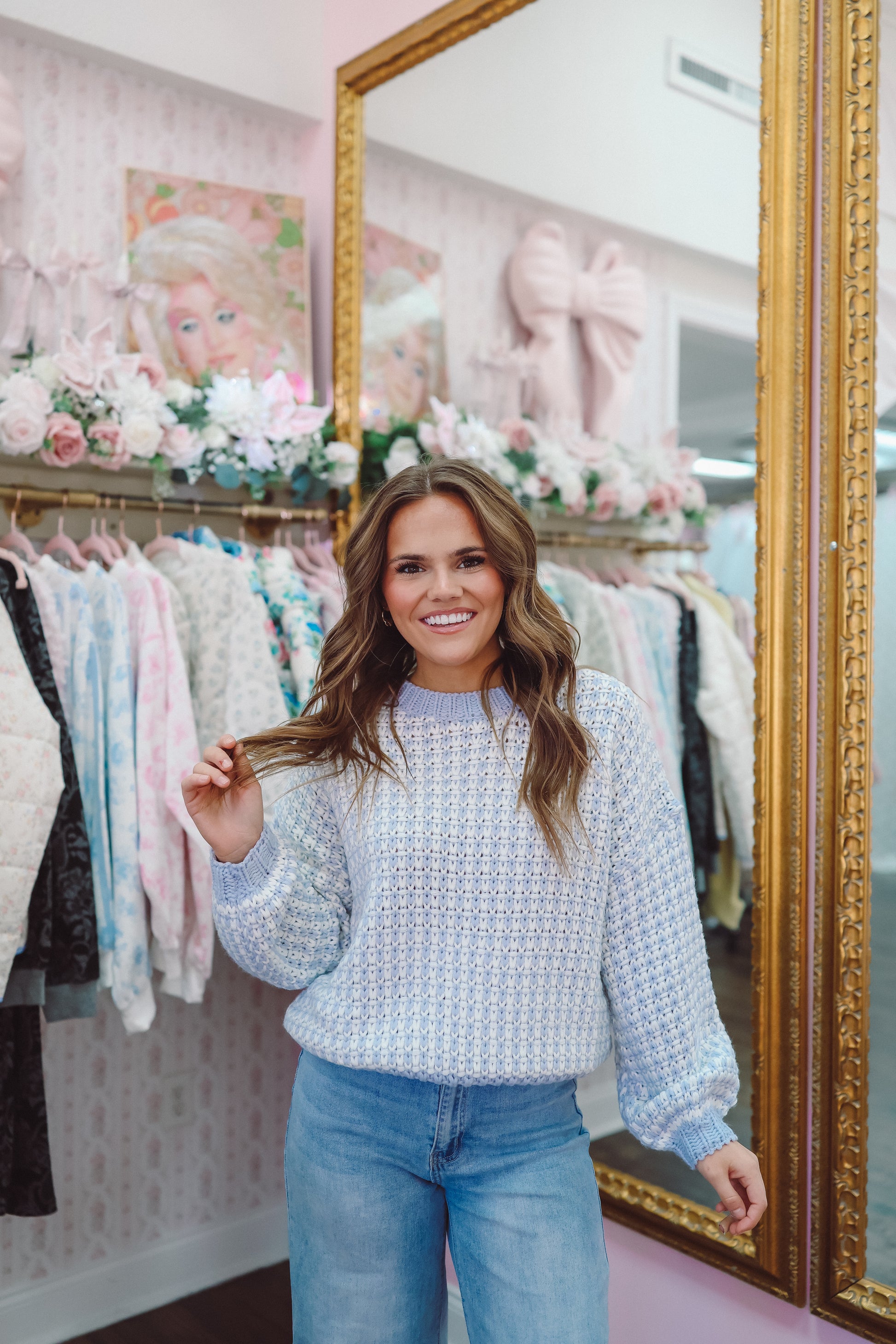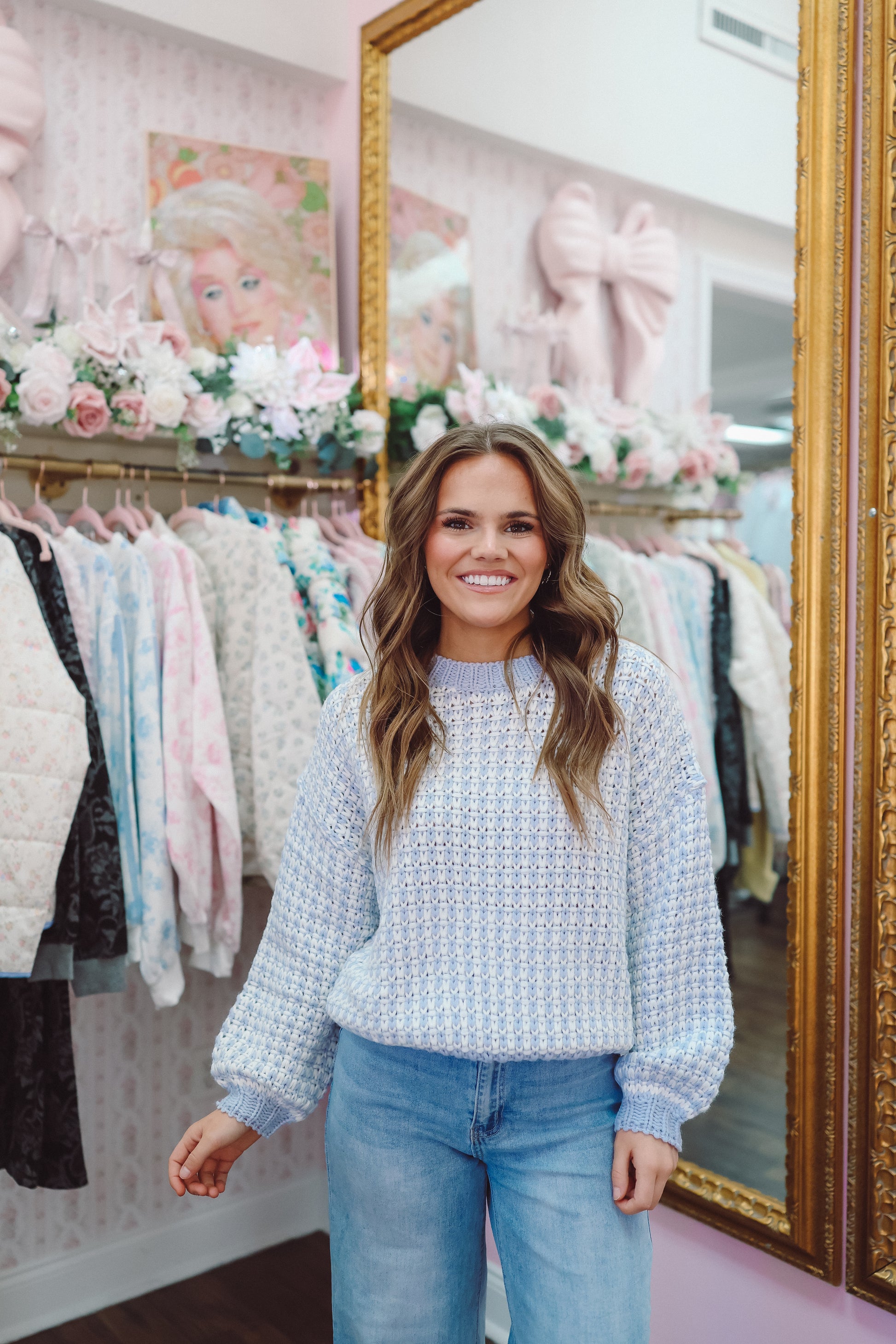 Meet the Colleen Two-Tone Textured Sweater, the soft, cloud-like knit your wardrobe will thank you for. Designed in a beautiful light-blue mélange with a dimensional, two-tone weave, this cozy sweater brings effortless charm to everyday dressing. The relaxed silhouette, subtle balloon sleeves, and easy crew neckline create a comfortable, laid-back fit that still feels polished. Its breathable knit offers warmth without bulk, perfect for year-round layering. Style it with crisp denim for weekend errands, or dress it up with a flowy skirt for a feminine, elevated look—the texture does all the talking. This sweater fits true to size with a naturally relaxed shape, making it ideal for front-tucks and cozy, oversized styling.