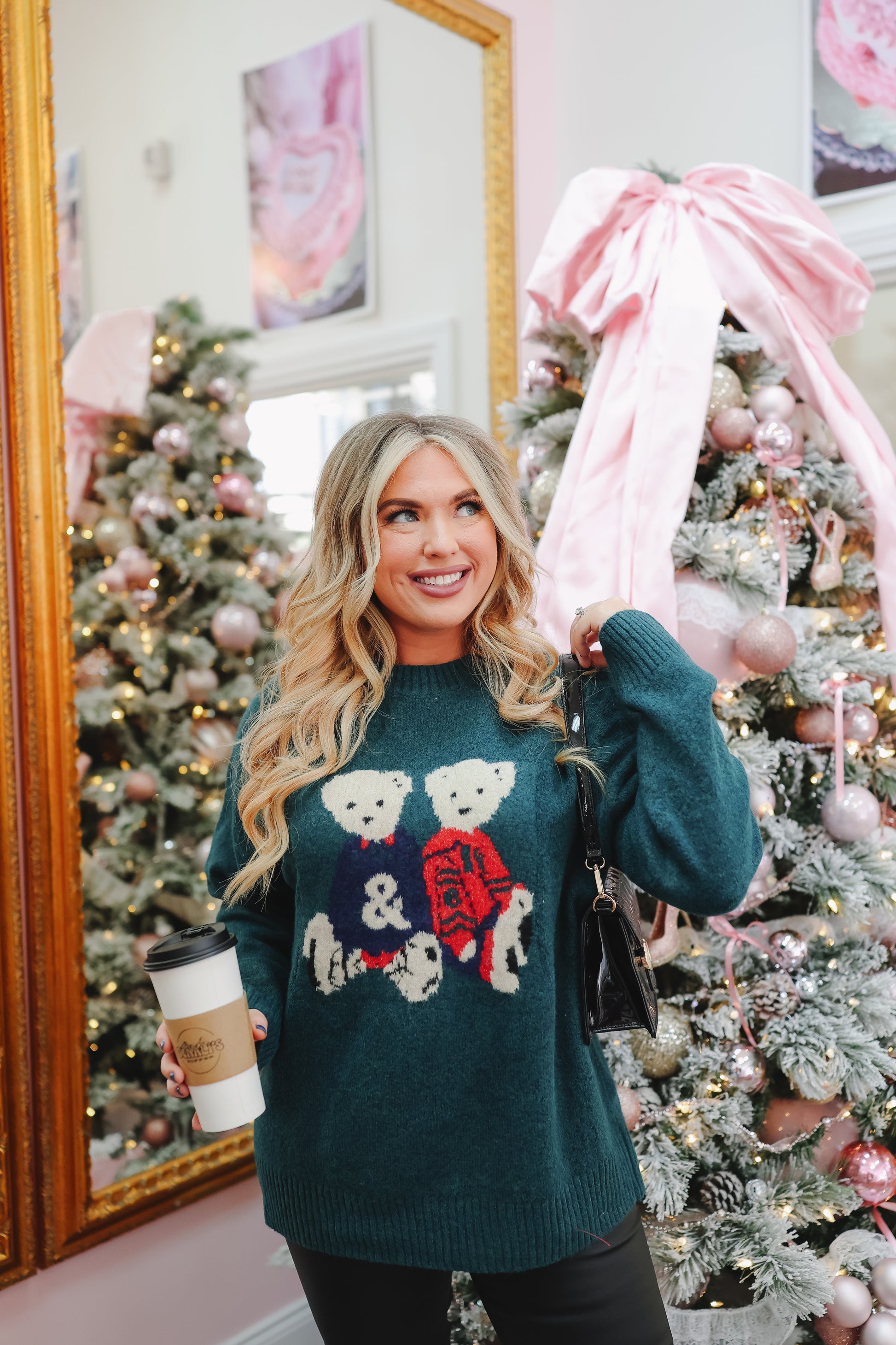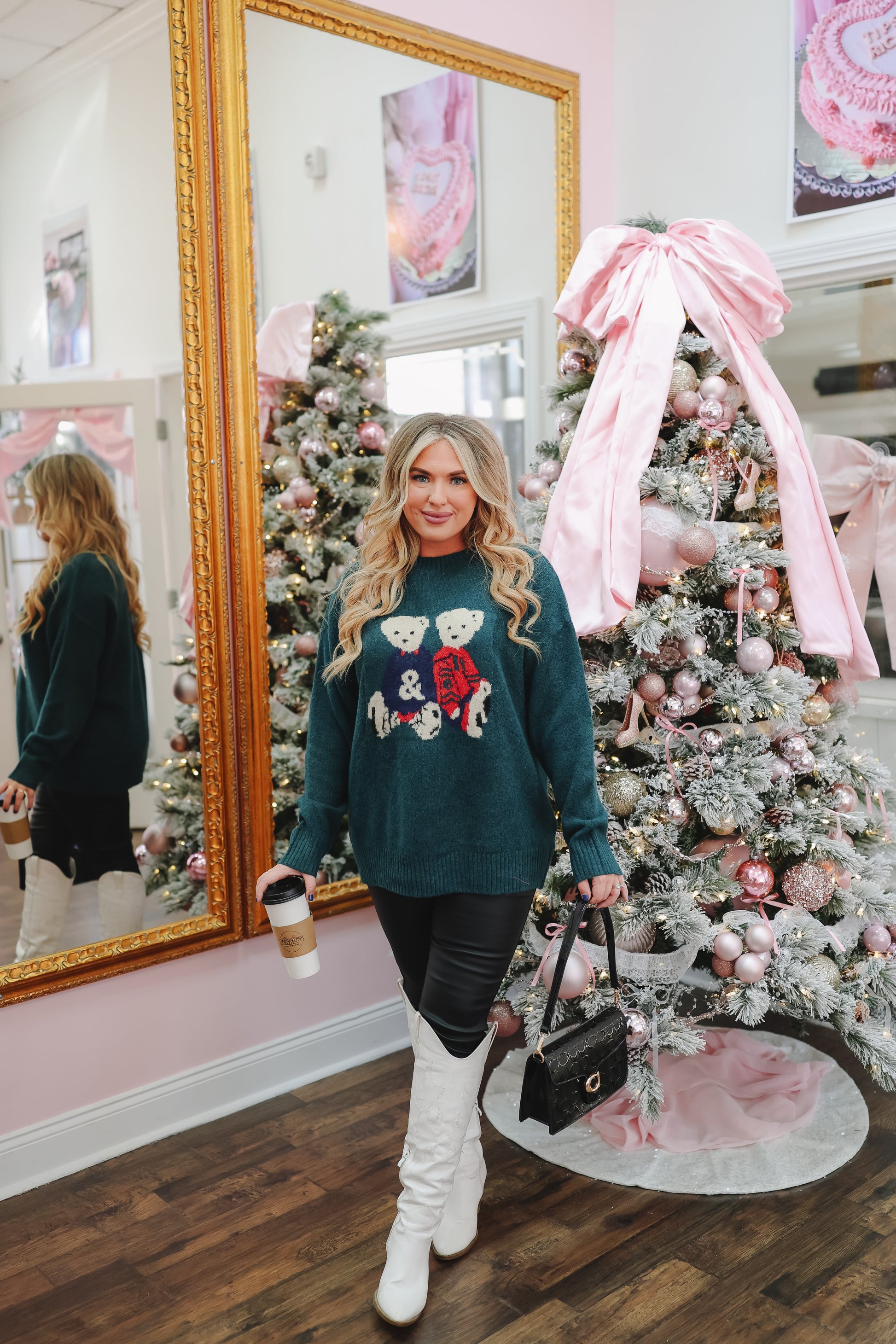 The Cozi Bear Sweater – Hunter Green is here to bring the cutest dose of cozy to your winter wardrobe. This ultra-soft, relaxed-fit knit features an adorable teddy bear duo stitched across the front—making it the sweetest statement sweater for holiday outings, chilly mornings, and casual festive days. With its rich hunter green base and charming pops of red and cream, this sweater is equal parts nostalgic, whimsical, and effortlessly comfy. Throw it on with jeans, corduroys, or a mini for the coziest “cute without trying too hard” look of the season.