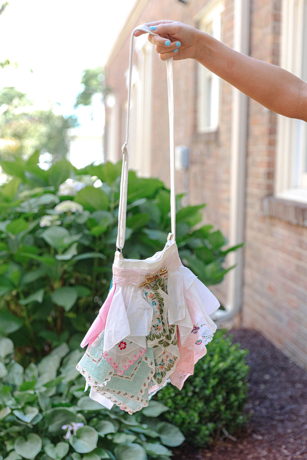 These bags are handmade by Karyn in the kitchen of her home nestled in Portland, Tennessee and the vintage and Victorian-era hankies are all organically sourced at the time of production of each bag. These bags are truly one of a kind, and there will never be two of the same bags, simply just because you can't find hankies that are two of a kind. We are so excited to finally have premade bag options available online to you to avoid wait times on custom orders! What you see photographed is what you get! If you are searching for perfection- these are not the bags for you! There are memories and moments in every hankie and piece of jewelry attached (some costume and some vintage) so you should expect wear spots on your bag. Karyn has perfected hiding most of the imperfections, but be aware you are buying a piece of art, history, and someone’s life moments.