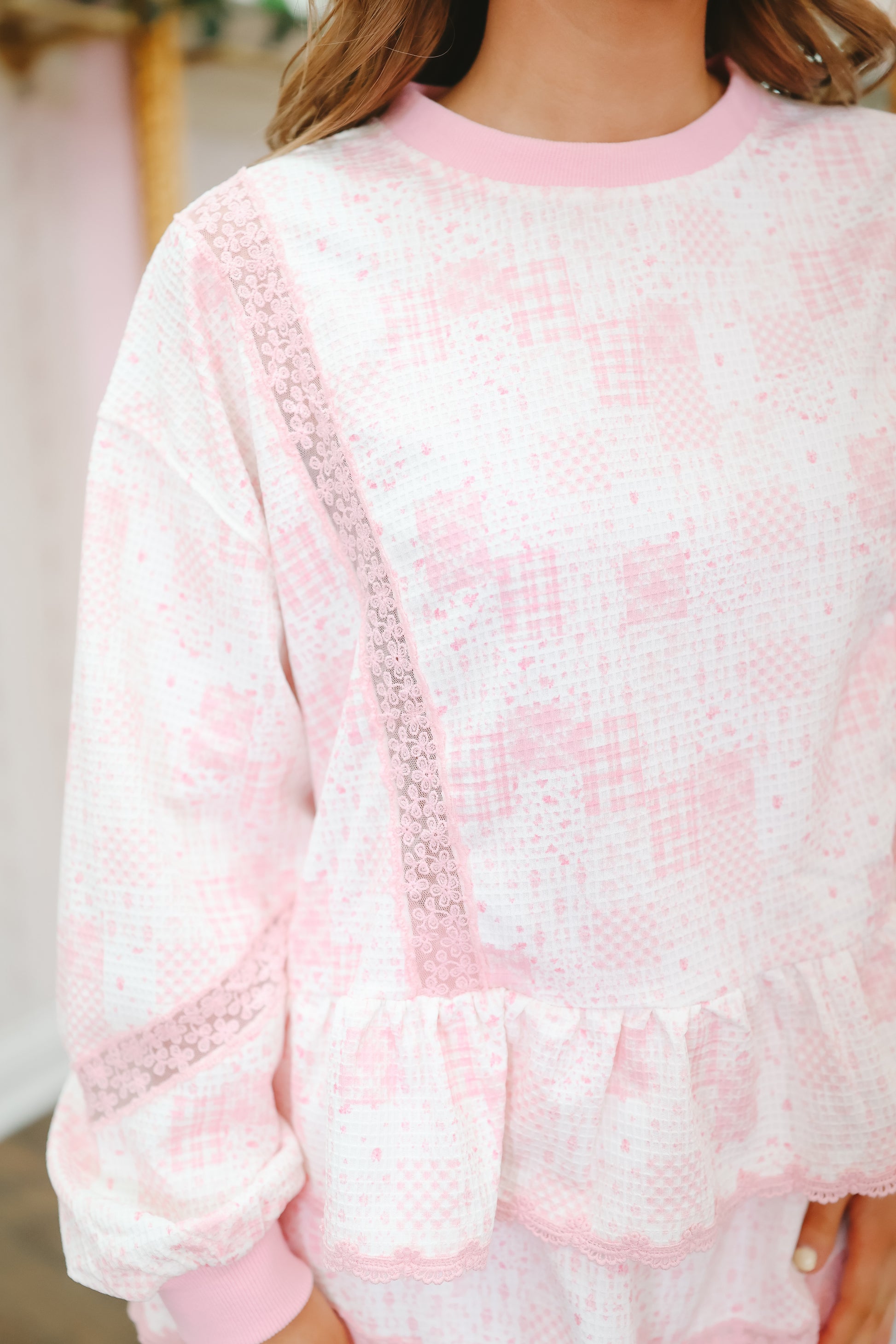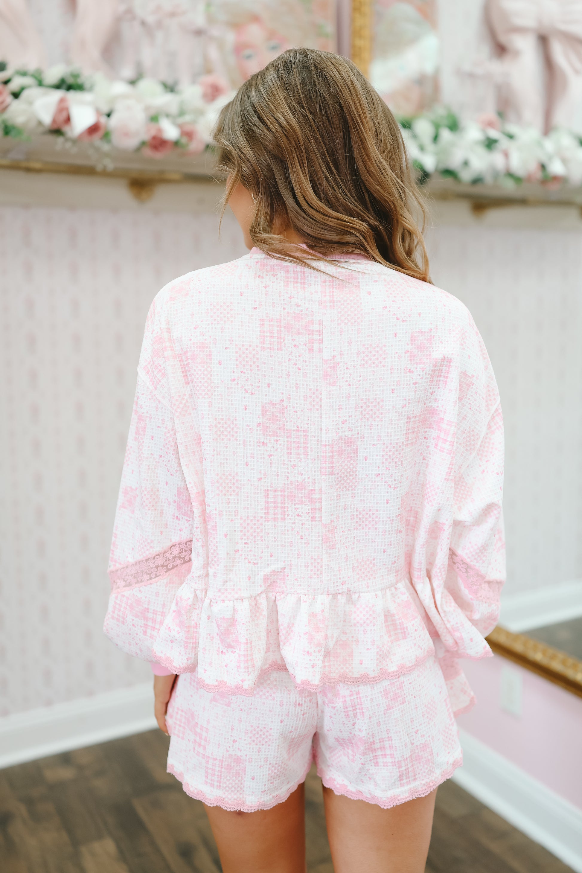 The Eliana Lace Trim Skort Set is effortlessly feminine with a cozy twist. Designed in a soft pink textured fabric, this matching set features delicate lace trim and a relaxed silhouette that’s perfect for lounging, errands, or casual days out.