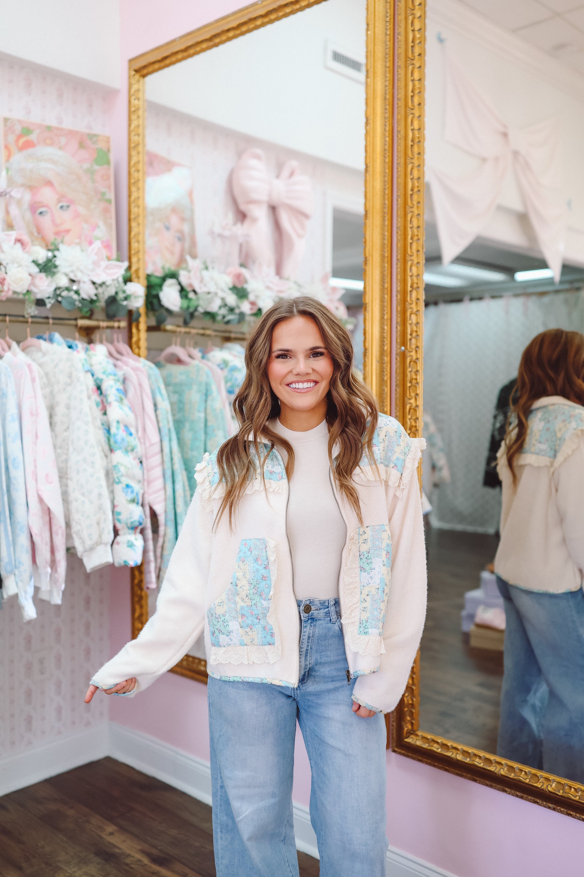 Soft, sweet, and full of cottage-core charm, the Harley Patchwork Ruffle Fleece Jacket – Butter Blue is the perfect blend of cozy fleece and vintage-inspired quilting. This dreamy jacket features a soft butter-cream fleece body accented with pastel blue patchwork panels trimmed in delicate ruffle edges for that feminine, handcrafted look. The zip-up front makes it easy for layering, while the relaxed fit gives you that effortless, comfy style Tipsy Ricki’s girls love. Whether you're running errands or styling an elevated lounge look, this jacket brings a little romance to everyday wear—warm, whimsical, and totally unique.