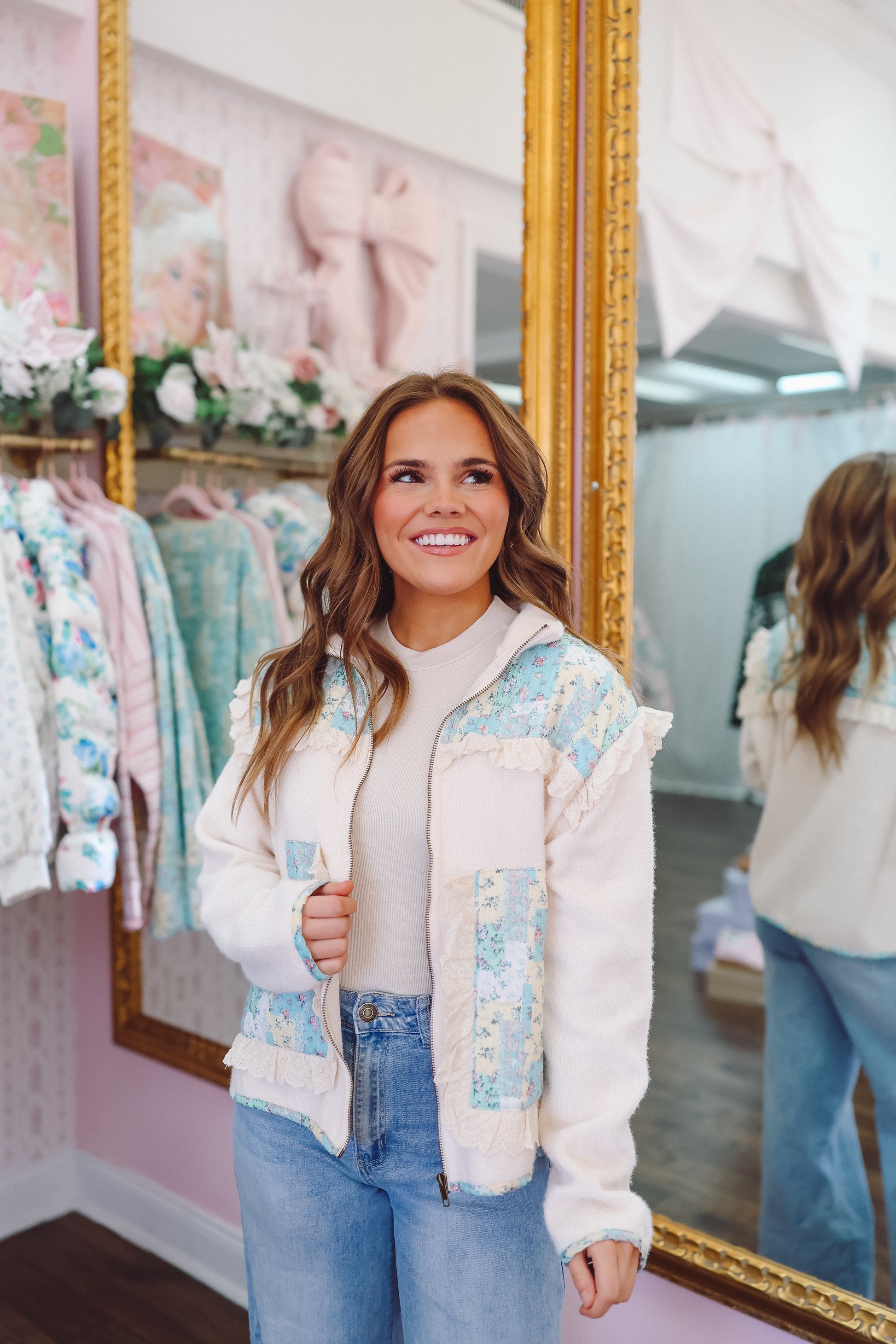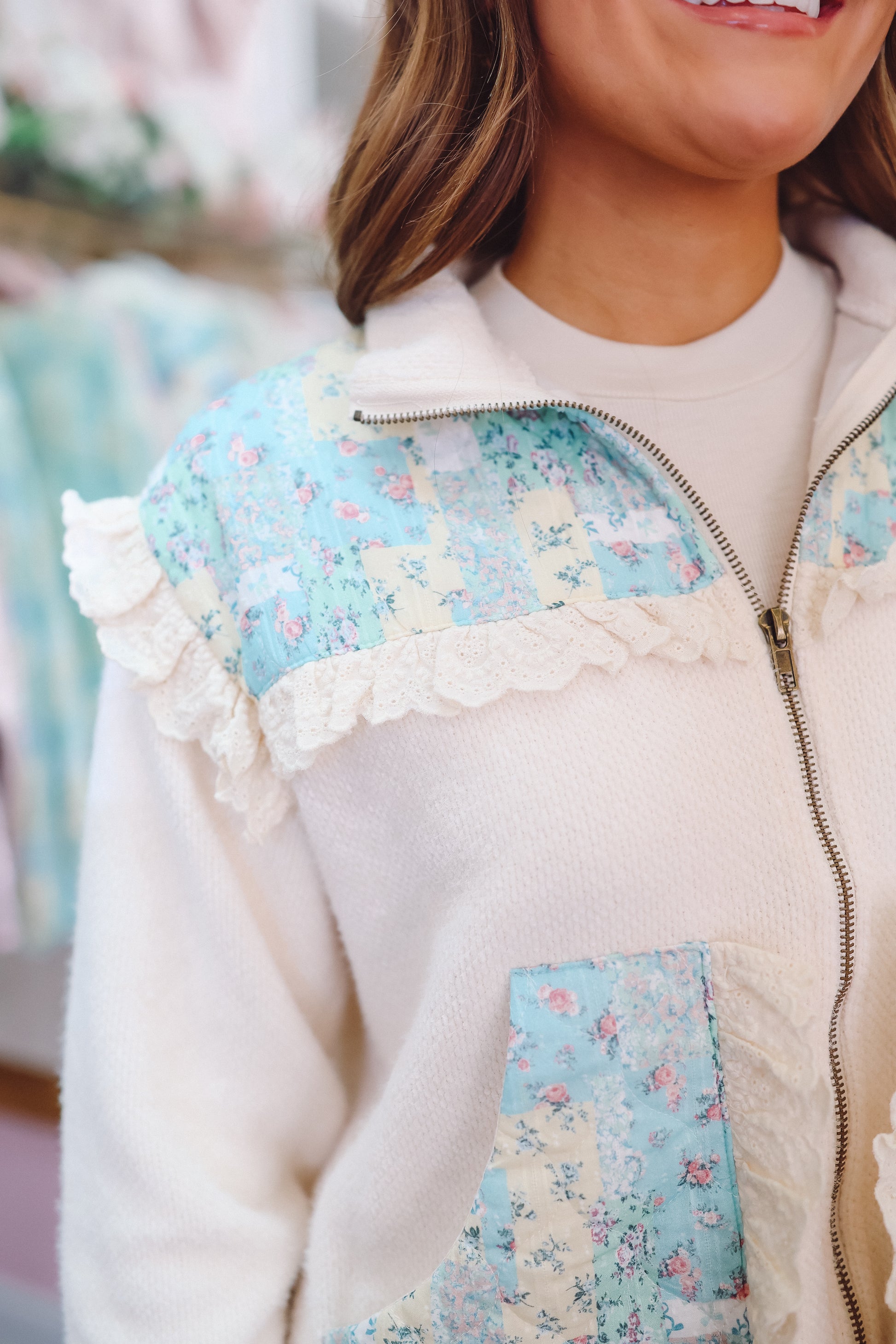 Harley Patchwork Ruffle Fleece Jacket - Butter Blue
