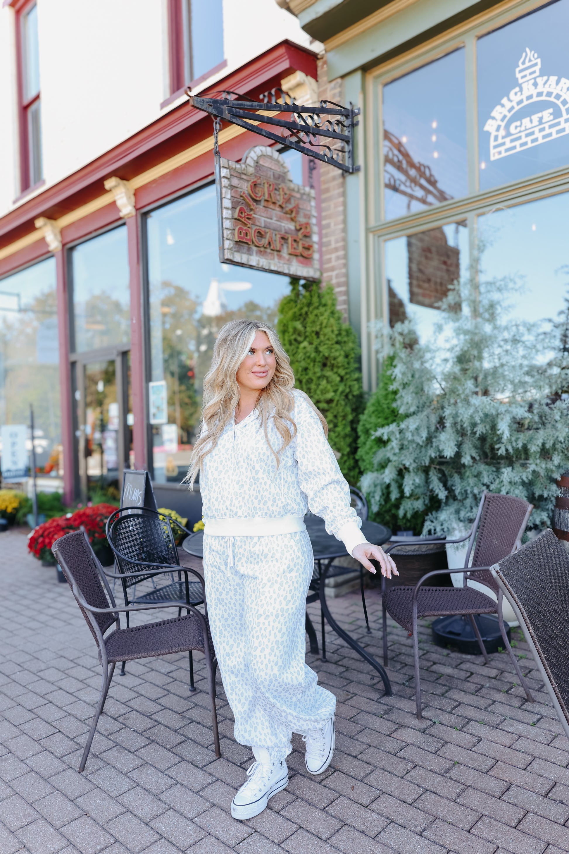 Fierce meets cozy in the Rebecca Leopard Hoodie – the perfect blend of casual comfort and chic sass. This pullover hoodie features a soft brushed fleece interior, allover grey leopard print, and a relaxed silhouette. With an adjustable drawstring hood, snap-button neckline, and wide ribbed cuffs, it's the easy go-to you’ll reach for again and again.
