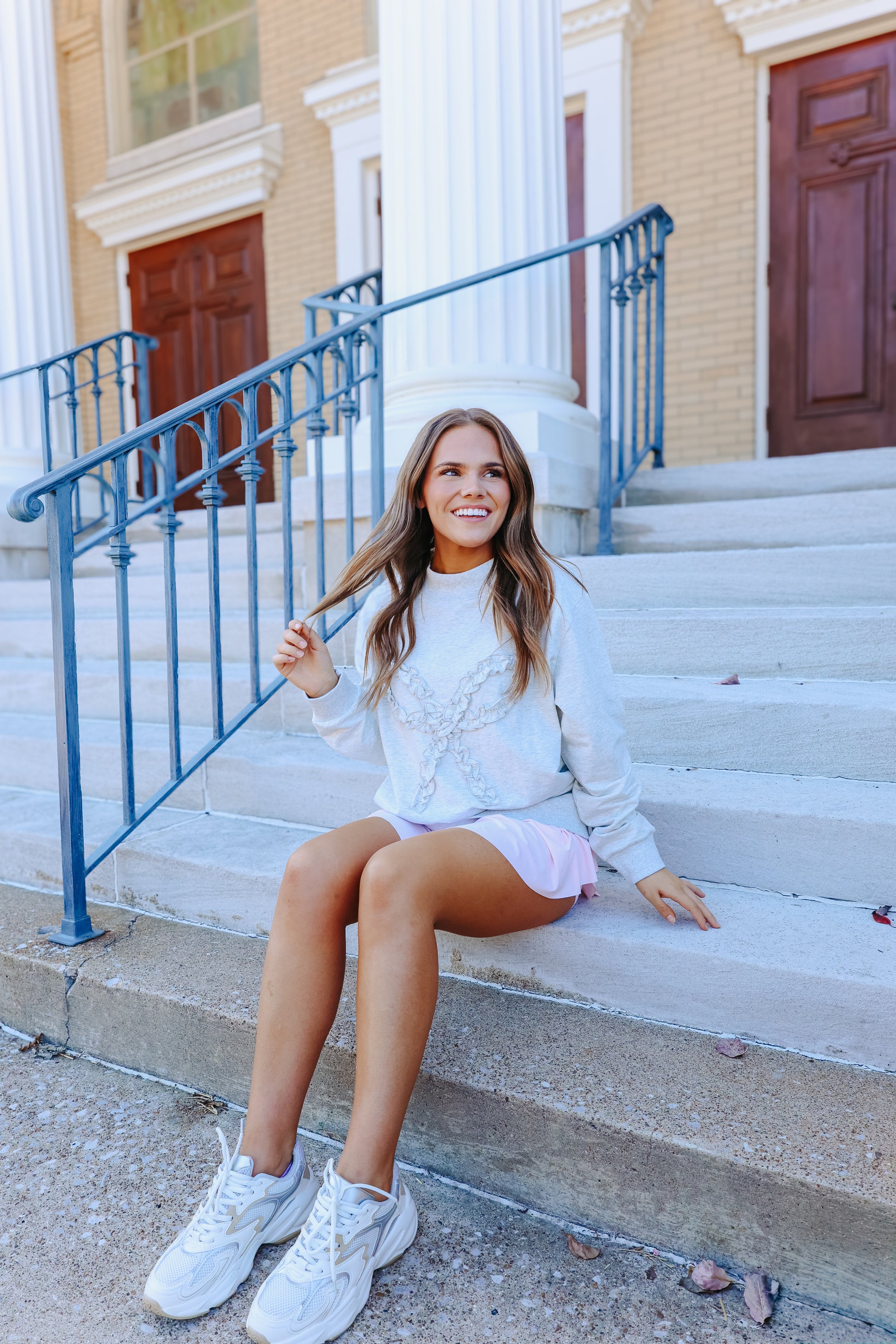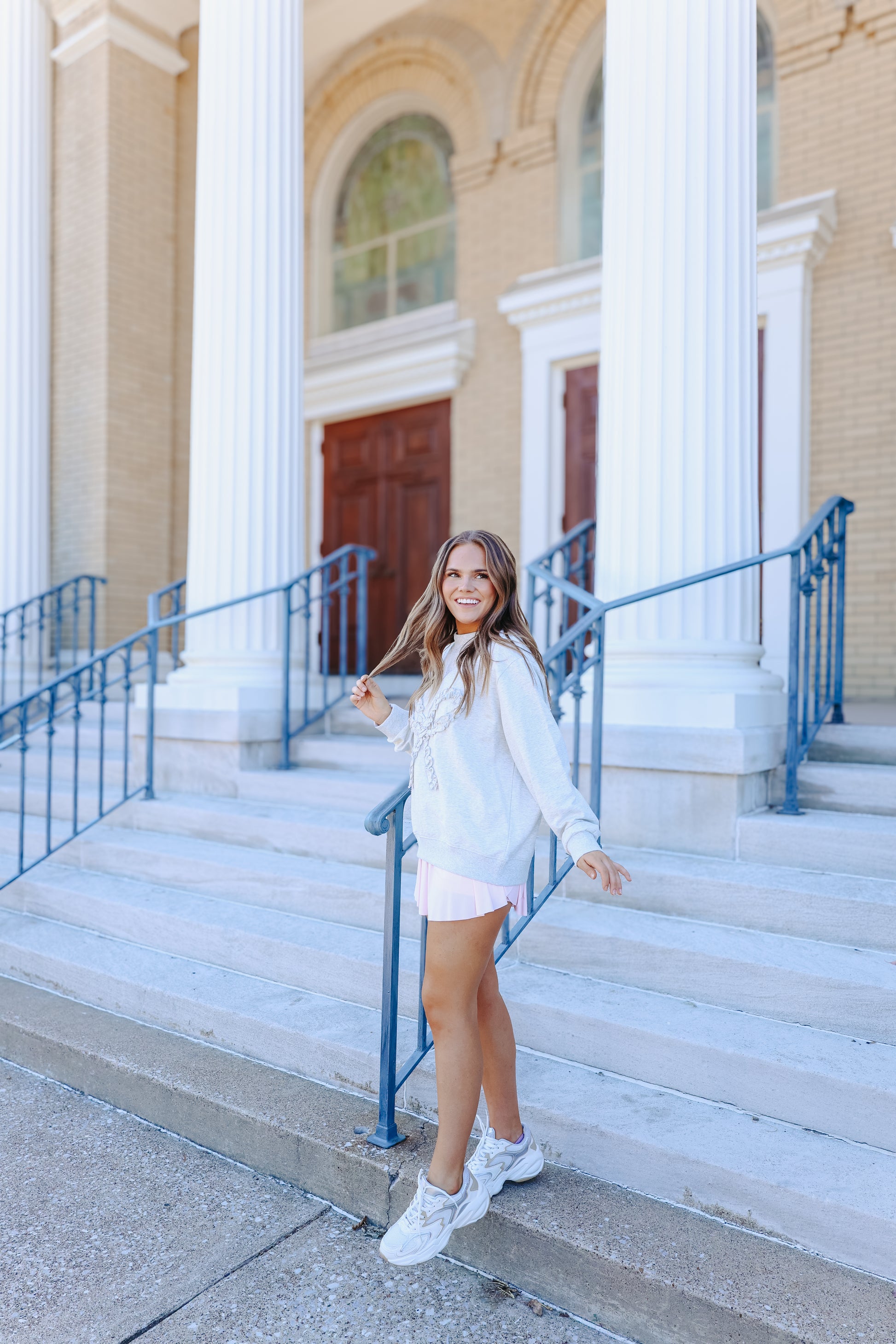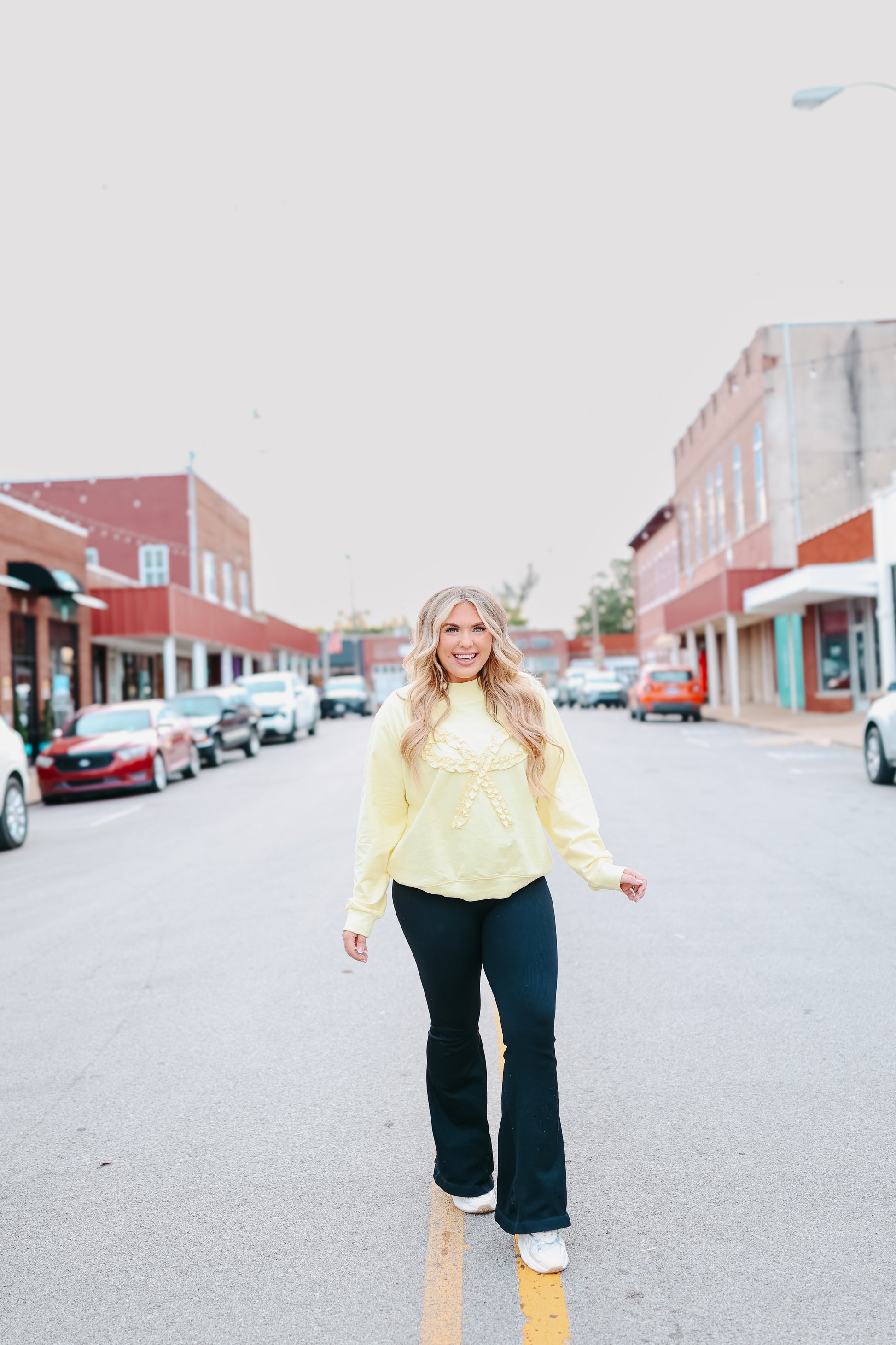 The Romie Mock Neck Oversized Ruffle Bow Sweatshirt is the perfect blend of cozy and cute. Designed with a relaxed oversized fit, this sweatshirt features a playful ruffle bow detail across the front that adds a feminine touch to your casual look. The mock neck gives it a chic finish, while the soft fabric keeps you comfortable all day long. Available in multiple colors, it’s the ultimate throw-on-and-go piece for lounging, errands, or layering up in style. Pair it with biker shorts, jeans, or joggers for an effortlessly on-trend outfit.