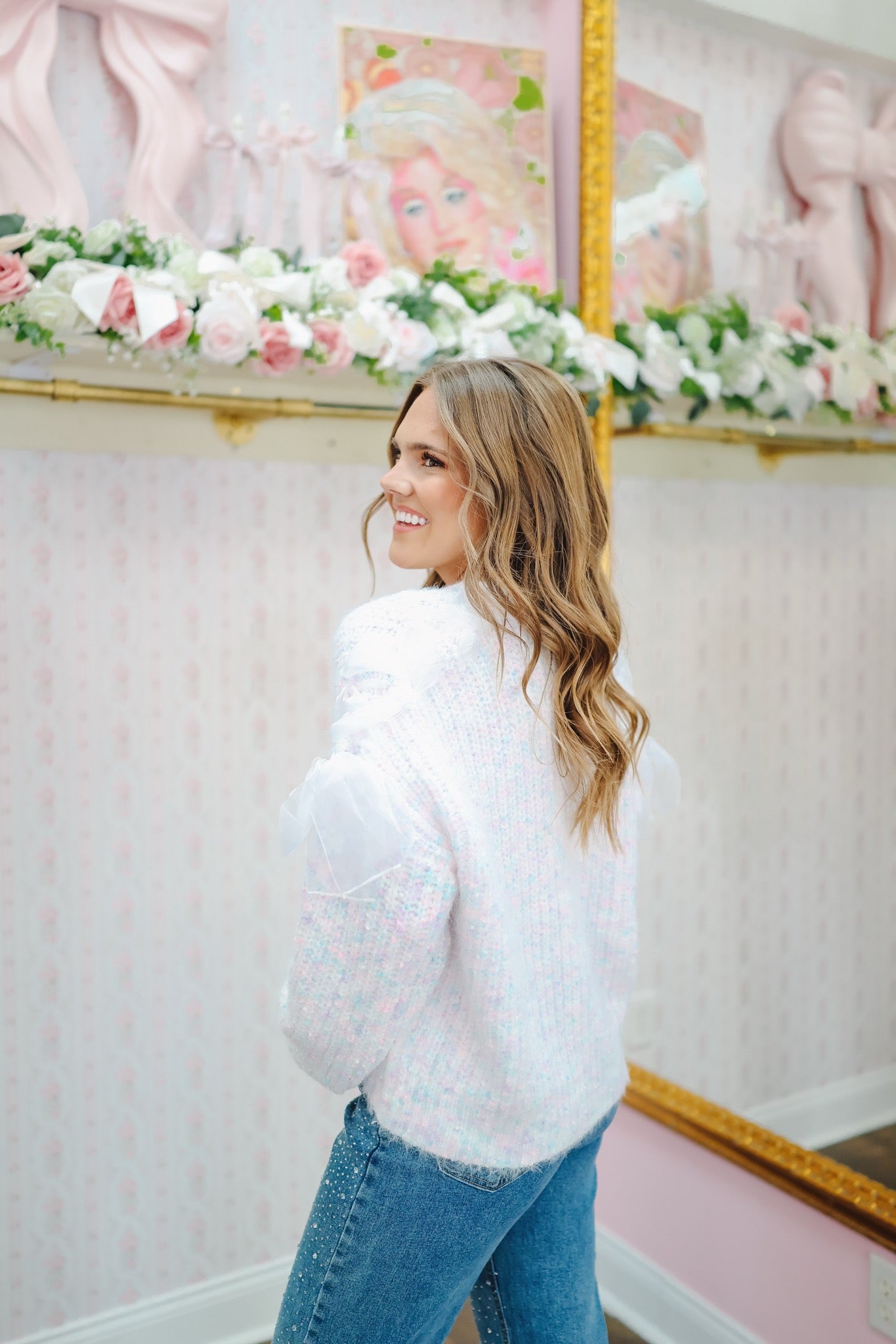 The Rylin Tie Cardigan is soft, dreamy, and effortlessly feminine. Featuring a cozy fuzzy knit with subtle multicolor speckling, this cardigan adds the perfect light layer to any outfit while keeping things sweet and elevated.
