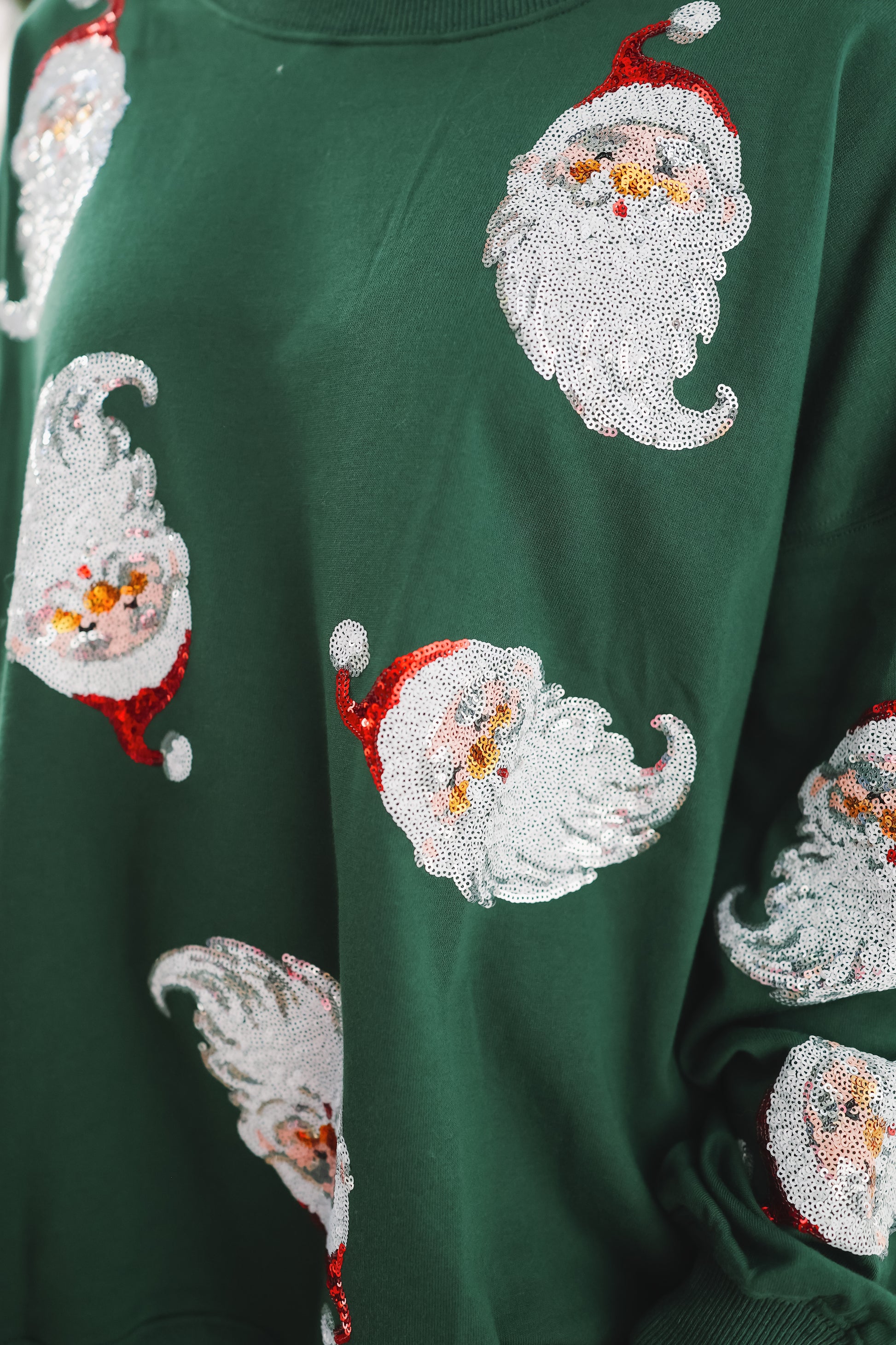 Santa's Sweetheart Sequin Pullover - Hunter Green