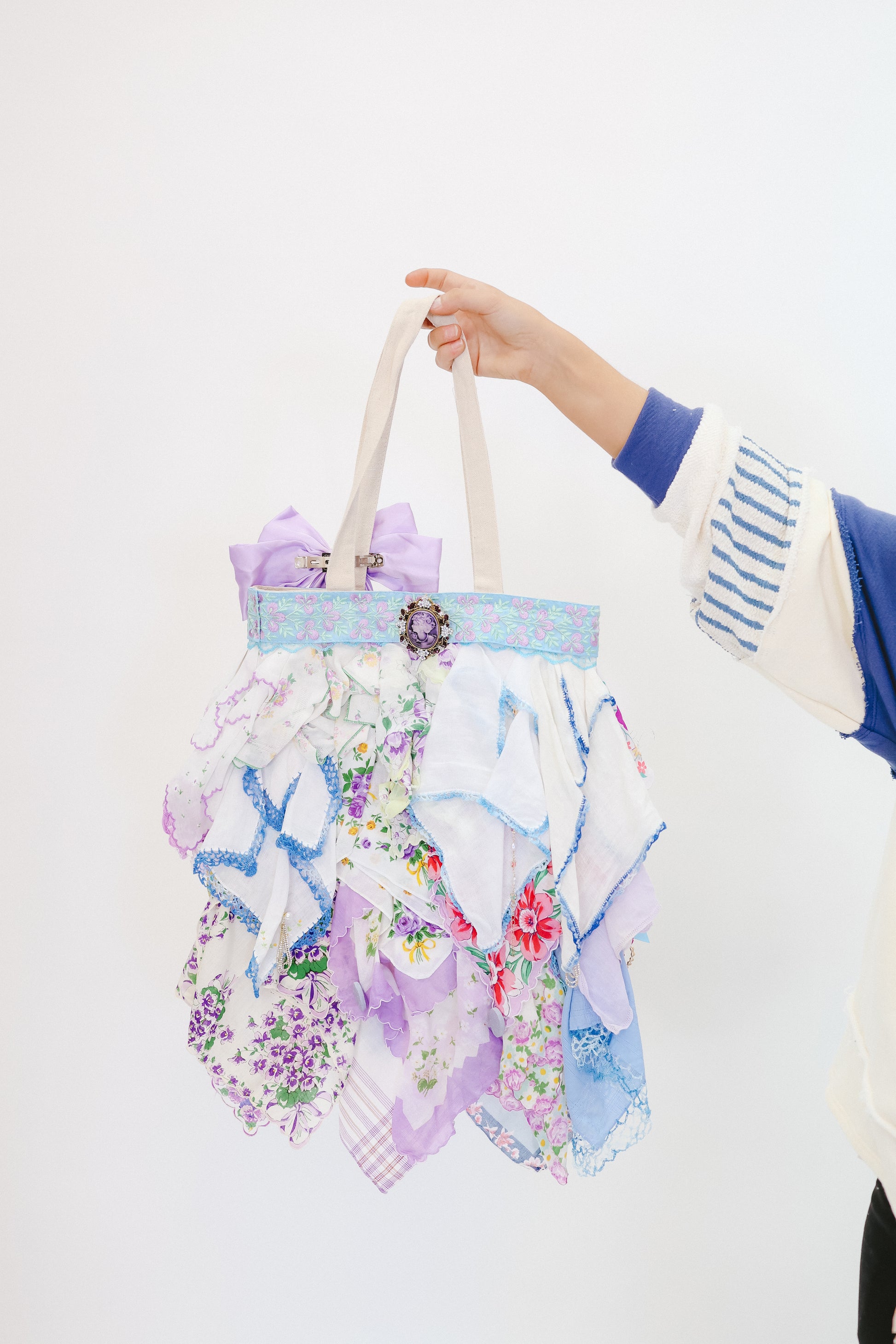 These bags are handmade by Karyn in the kitchen of her home nestled in Portland, Tennessee and the vintage and Victorian-era hankies are all organically sourced at the time of production of each bag. These bags are truly one of a kind, and there will never be two of the same bags, simply just because you can't find hankies that are two of a kind. We are so excited to finally have premade bag options available online to you to avoid wait times on custom orders! What you see photographed is what you get! If you are searching for perfection- these are not the bags for you! There are memories and moments in every hankie and piece of jewelry attached (some costume and some vintage) so you should expect wear spots on your bag. Karyn has perfected hiding most of the imperfections, but be aware you are buying a piece of art, history, and someone’s life moments.